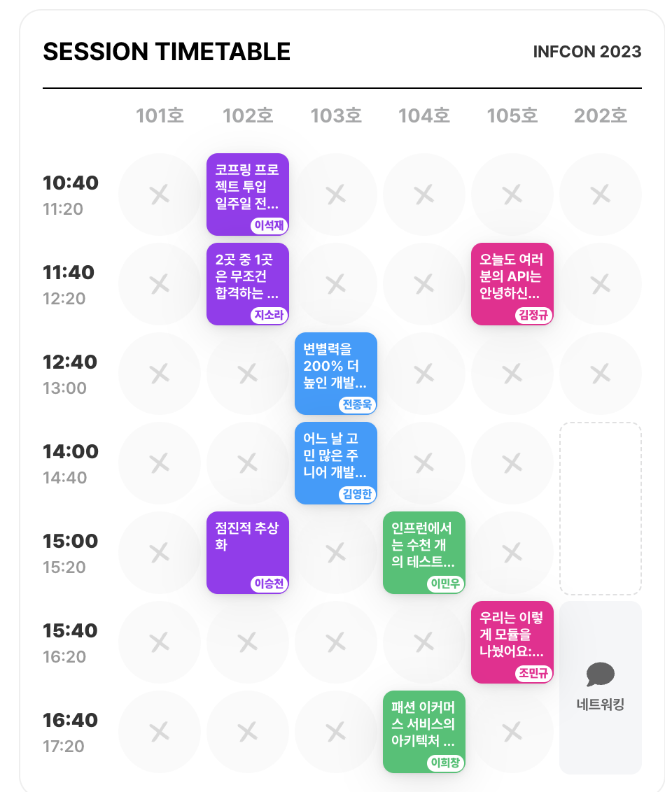 인프콘에 당첨된 후 먼저 시간표를 짰다.