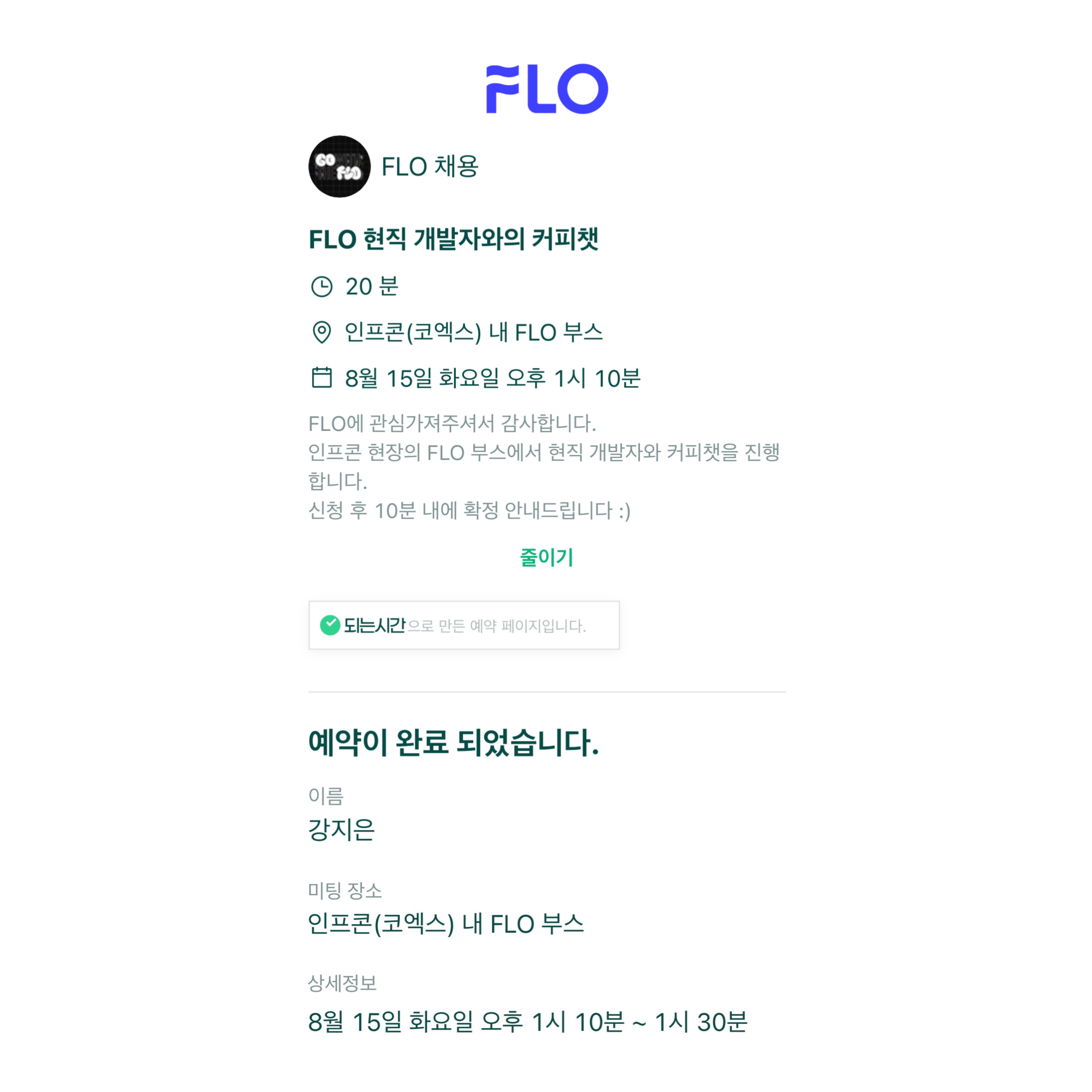 FLO 부스에 갔다가 백엔드개발자분과 커피챗을 1시 10분으로 잡게 되었는데