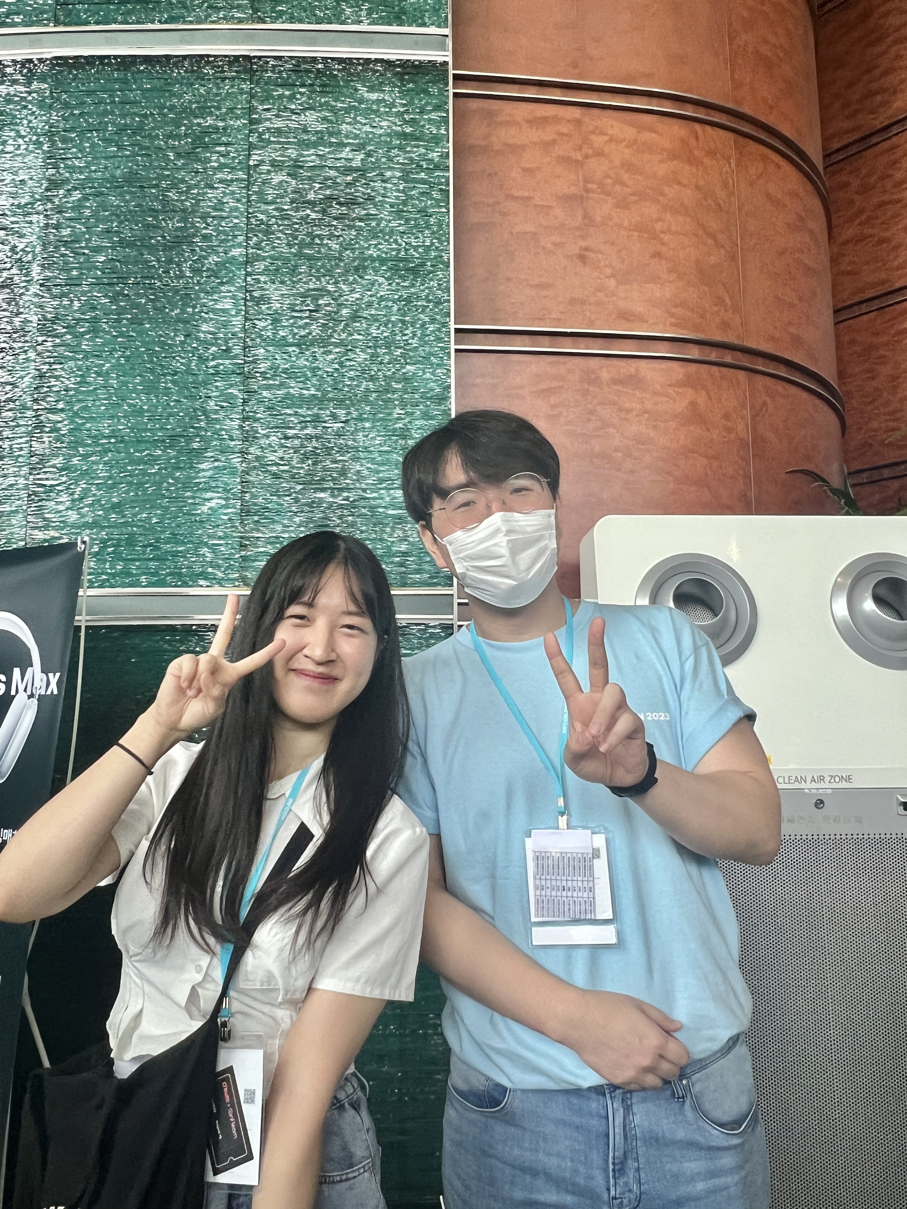 들어가자마자 네컷사진존은 줄이 길었는데 가지않았다. (언젠가 줄이 없을 때 가려고 ㅎㅎ) - 데브챗 신청은 미리 하는게 좋을것 같았다. 거의 초반부에 데브챗존으로 미리 움직였다.