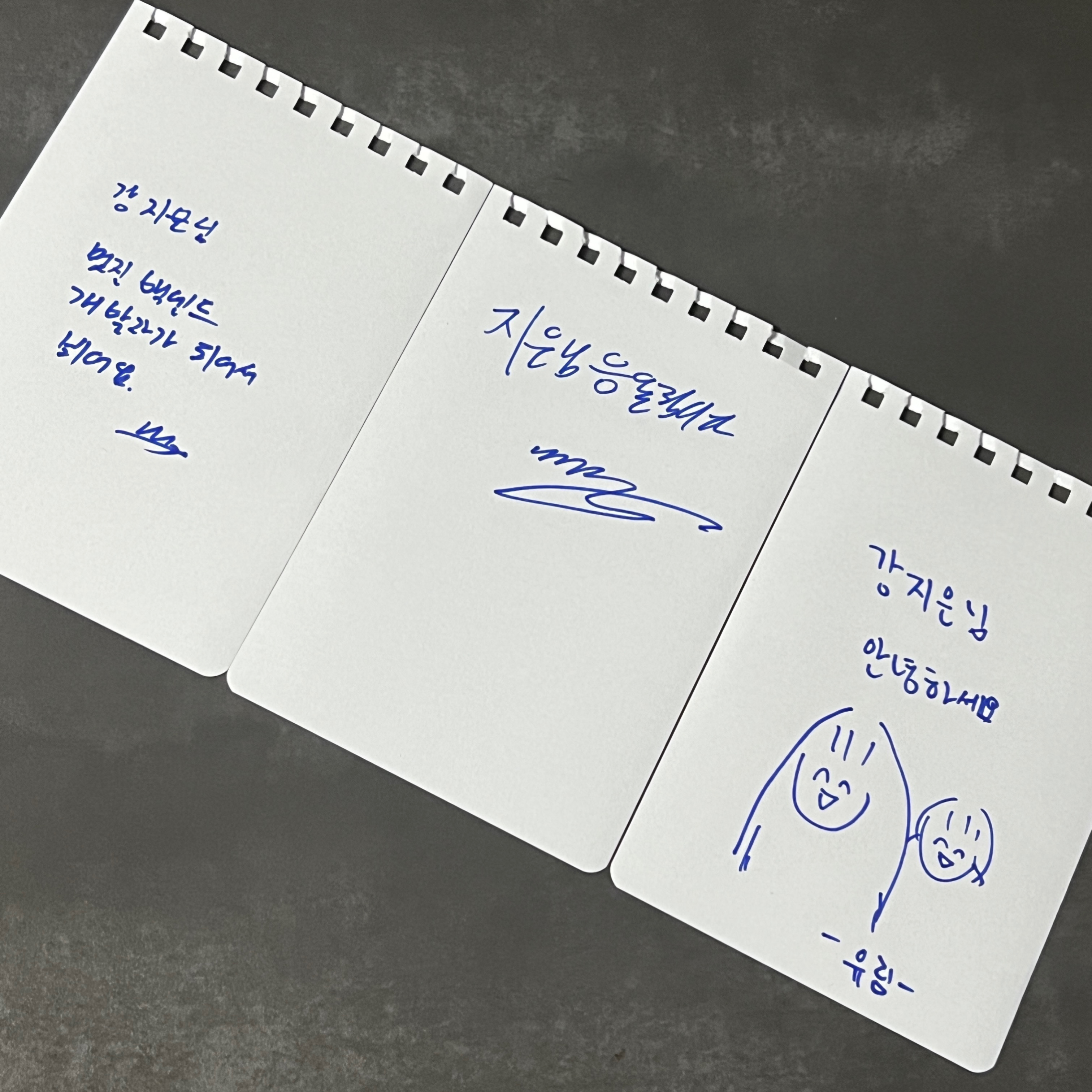 지나가다가 만나게 될 경우 싸인을 받으려고, 전 날 유성펜과 노트를 구매했다.