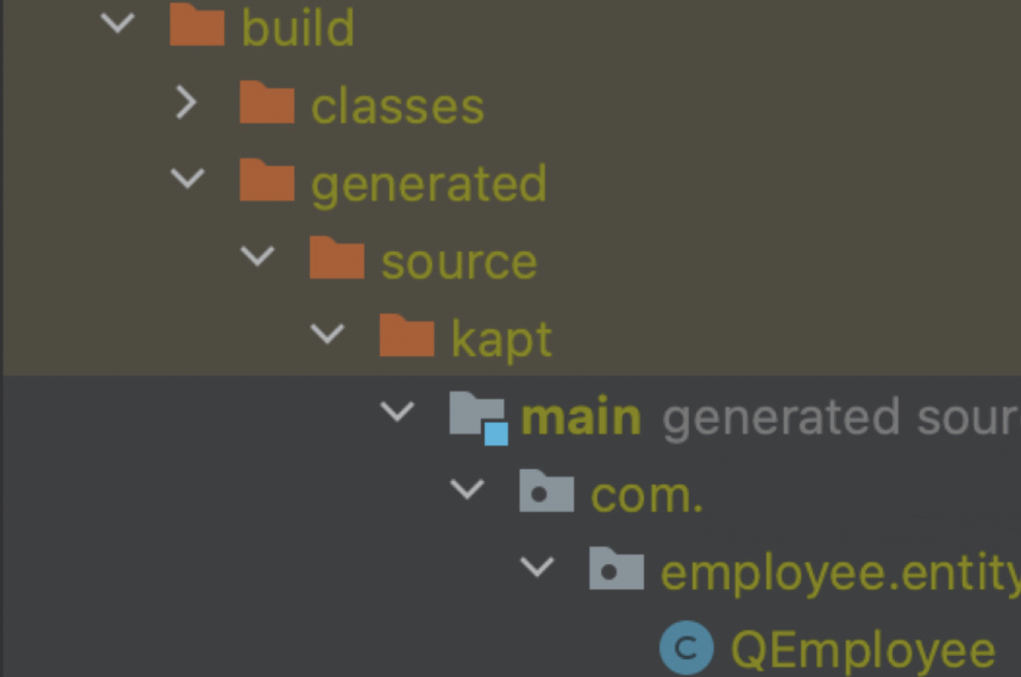 build > generated > source > kapt > main > com > ... 엔티티 파일 위치에 QClass가 생긴것을 확인할 수 있다.