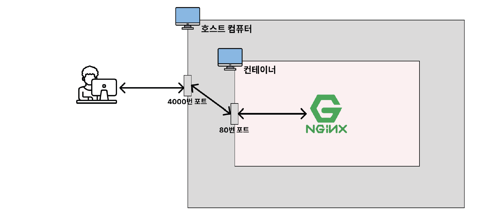 요청을 보내는데 4000을 받으면 컨테이너의 80번 포트와 연결시키겠다