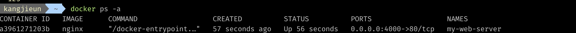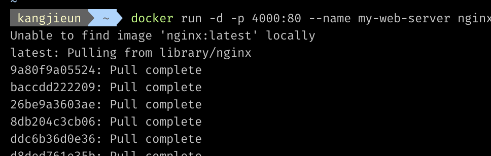 docker run -d -p 4000:80 --name my-web-server nginx