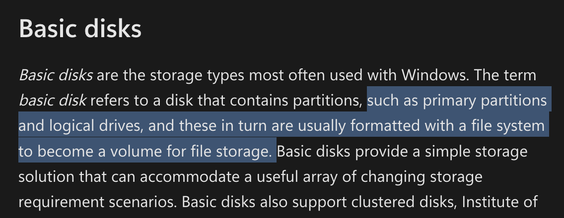 기본 디스크 라는 용어 는 주 파티션 및 논리 드라이브와 같은 파티션을 포함하는 디스크를 말하며,
