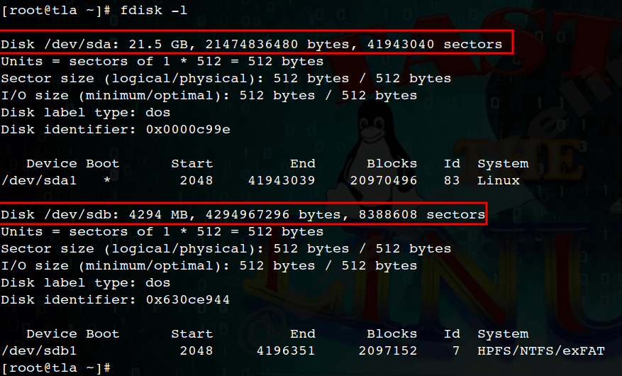 리눅스에선 fdisk -l명령어로 현재 디스크와 파티션을 볼 수 있다.