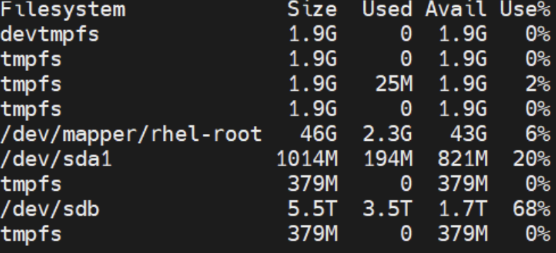 df 명령어를 치면 파일시스템 디스크 공간을 볼 수 있다.